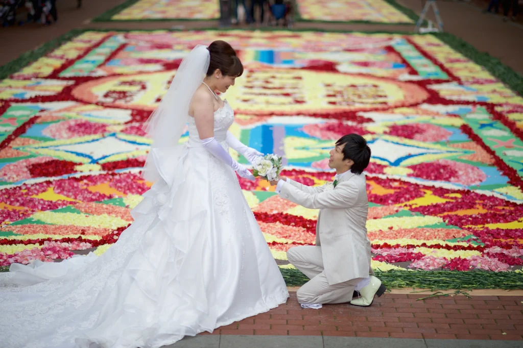 撮影中、フラワーカーペットを制作されていた