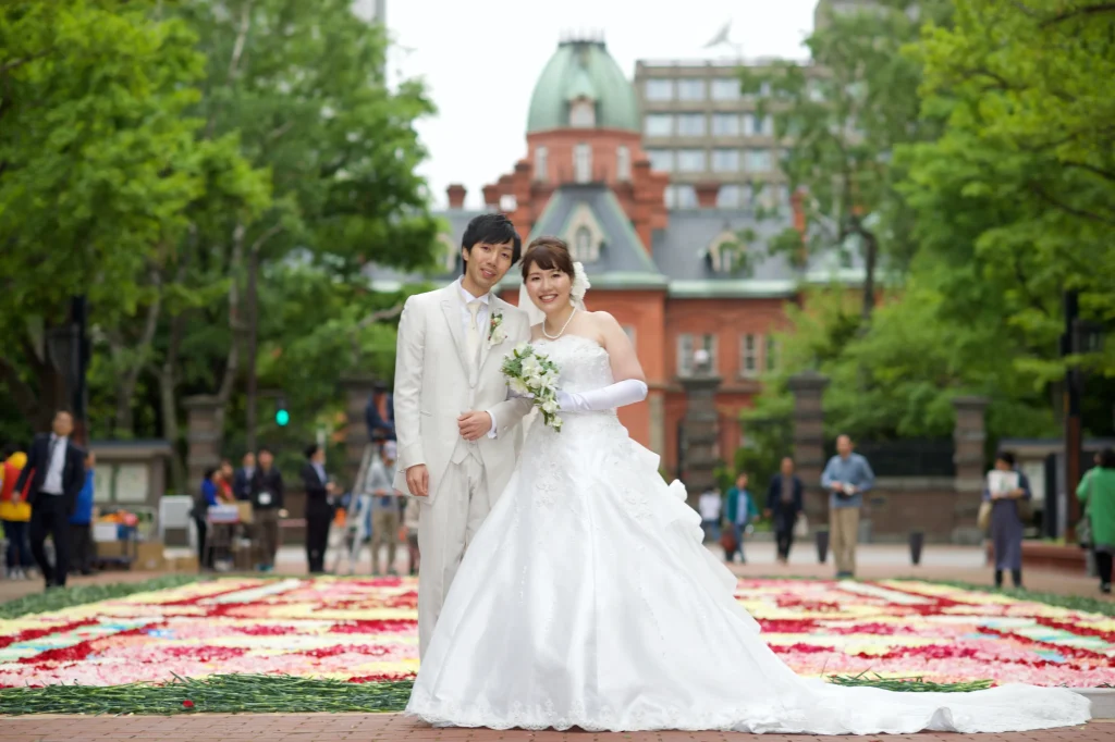 中島公園で紅葉フォトウェデイング豊平館、永山邸お客様の声