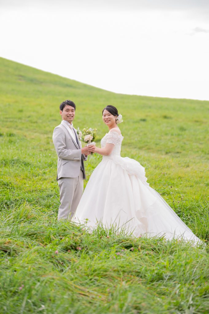 秋緑が萌える季節札幌資料館と札幌モエレ沼公園でフォトウェデイング|ウェディングドレス・カラードレス【ご新郎様の声】