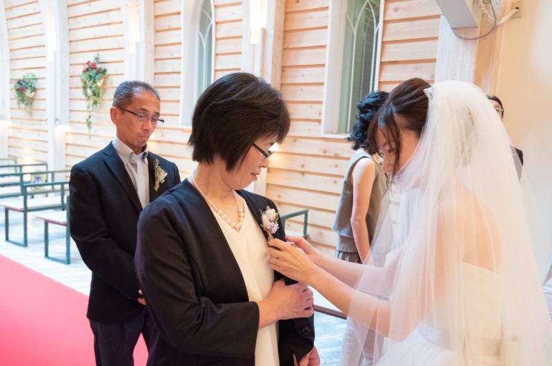 ご新婦様がご準備の手つくりのブートニアをご家族の胸にさすシーンなどもたくさん撮影しました