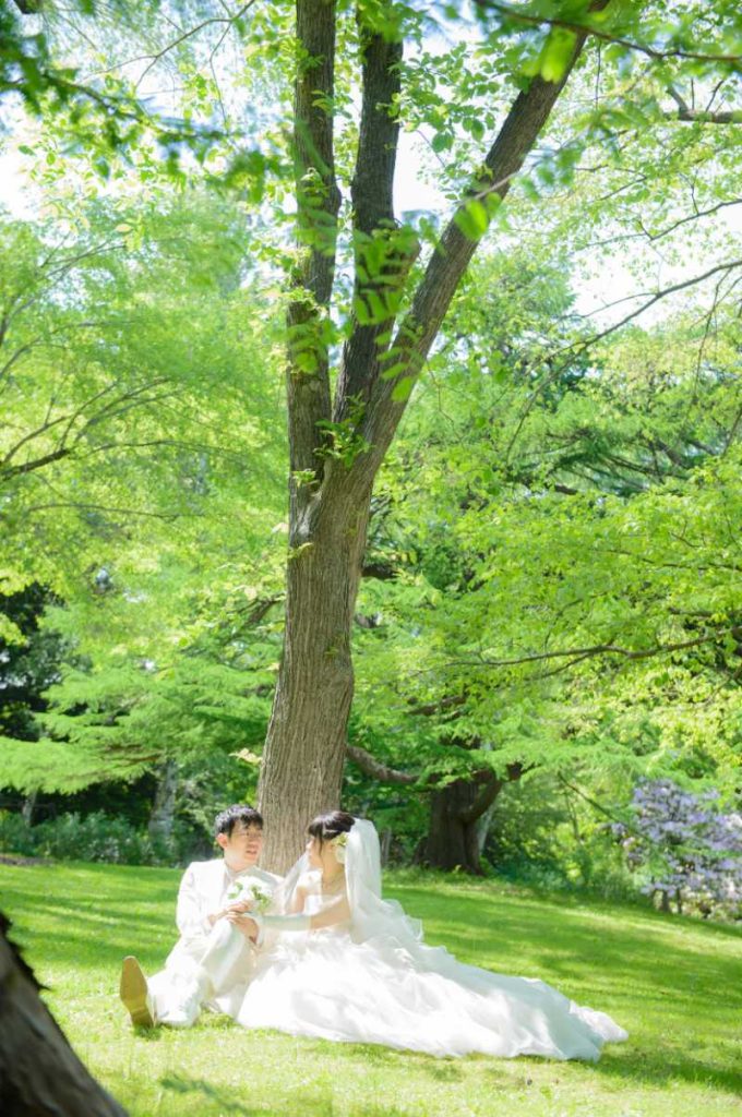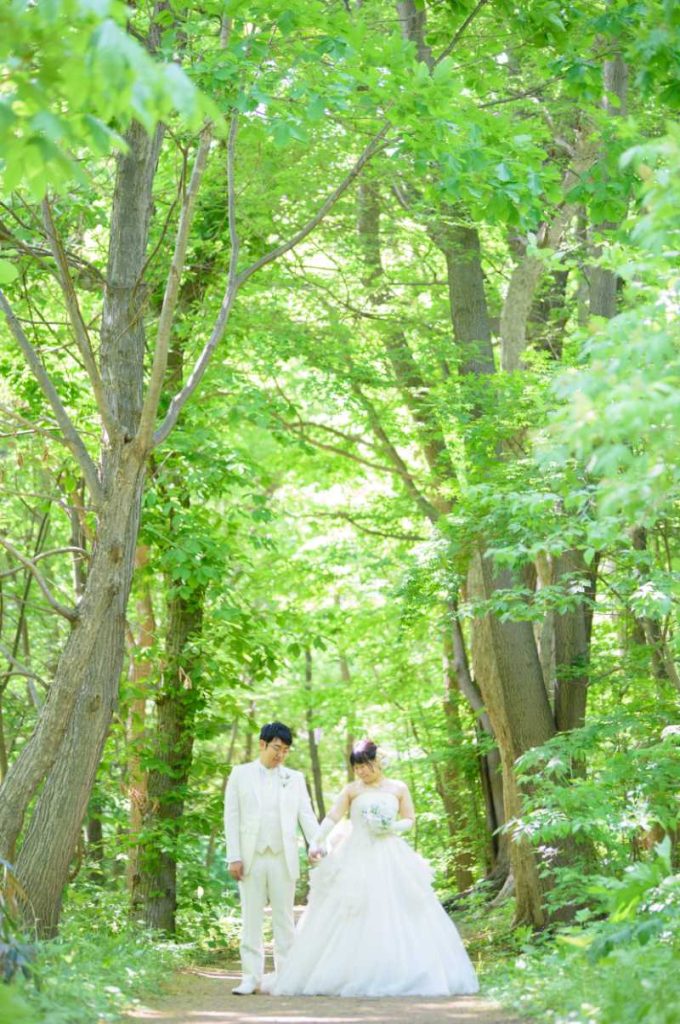 「新婚旅行も兼ねて、北海道で結婚写真を残したい」そんなご希望から始まった、大阪から北海道へのフォトウェディング おふたりが選ばれたのは、北海道らしいスケール感と、やさしい空気に包まれた緑あふれるロケーション撮影でした
