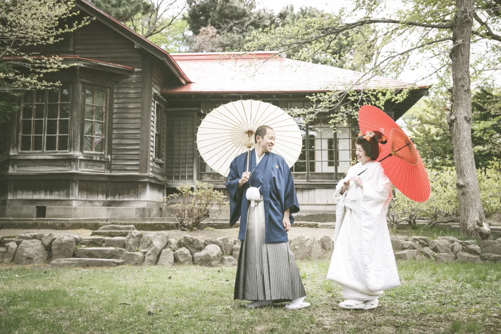 白無垢・色打掛・カラードレスの3着で残すフォトウェディングは、重要文化財「清華亭」と道庁赤レンガ庁舎という歴史あるロケーションだからこそ叶う一生の記念に。大人のための上質な結婚写真をご紹介します