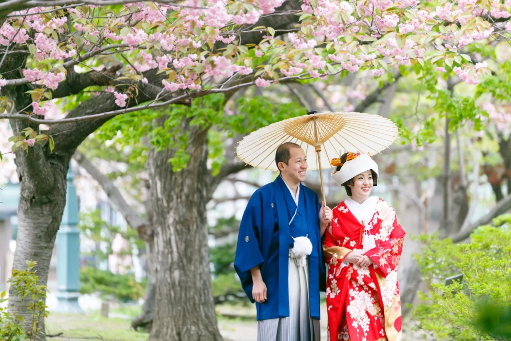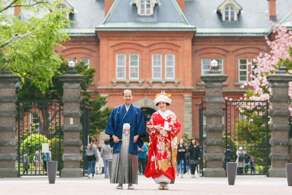 桜の季節に叶えるフォトウェディング|白無垢・色打掛・カラードレスで撮る重要文化財「清華亭」と道庁赤レンガ庁舎