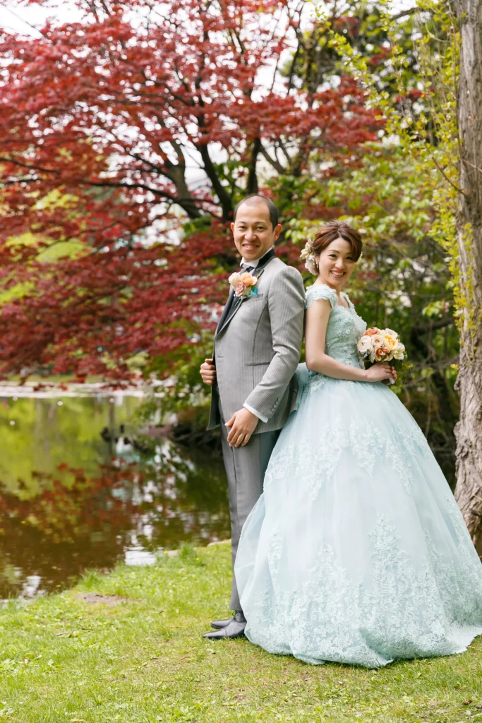 中島公園で紅葉フォトウェデイング豊平館、永山邸お客様の声