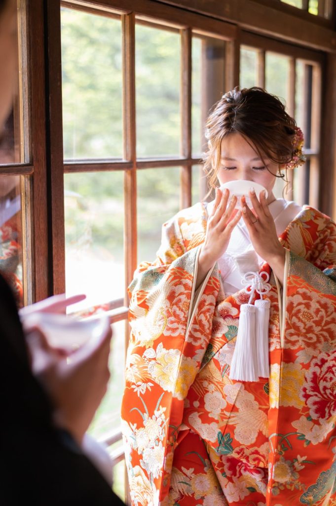 和装は、白無垢、色打掛、大振袖からお選びいただけます。今回は色打掛を着ての撮影です☆