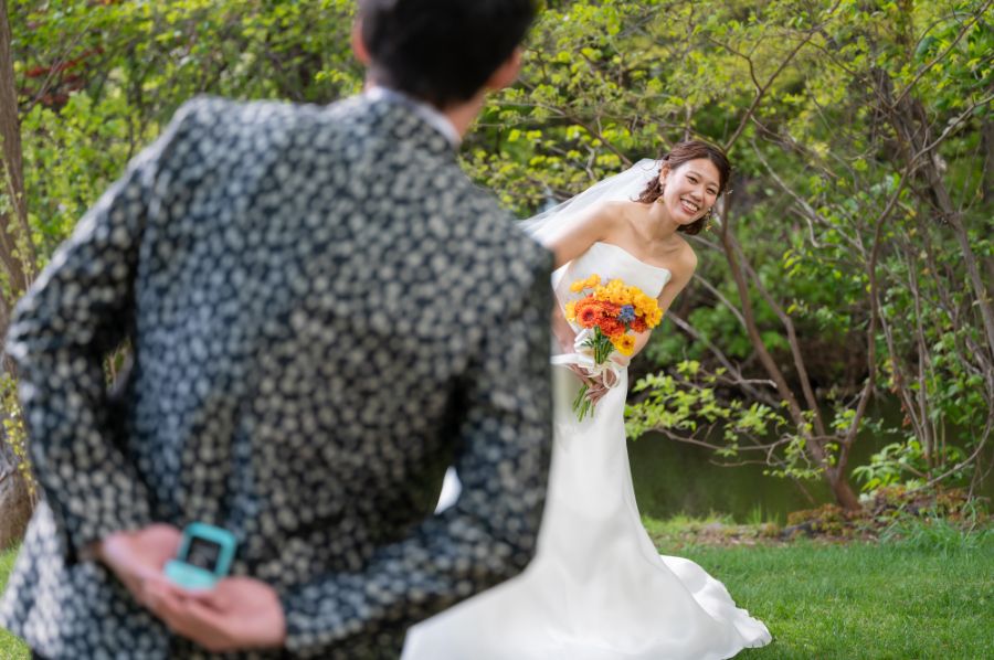 プロポーズ風の撮影!表情を作っても良し、実際にまたプロポーズをしてもらっても良し!お好きな撮影ポーズをセレクト可能◎もちろんカメラマンのお任せでも大丈夫♪