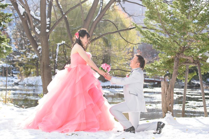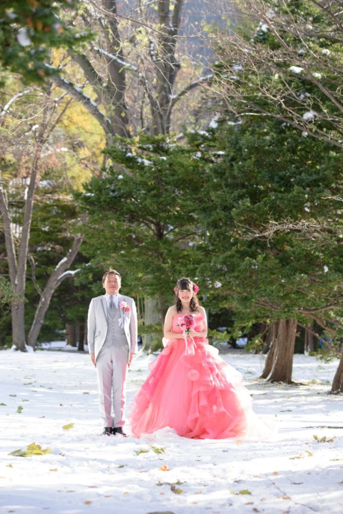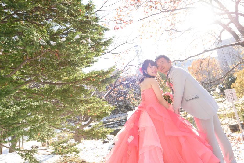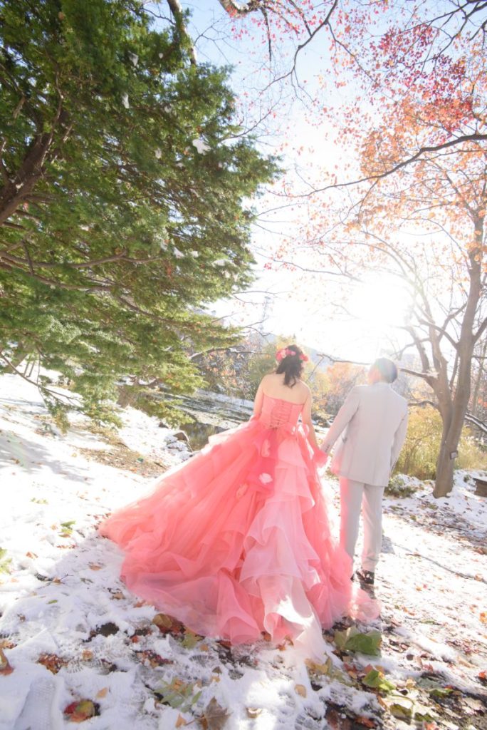 初雪の日、晴れた陽の光!フォトウェデイング|ウェディングドレス&カラードレス【撮影レポート】