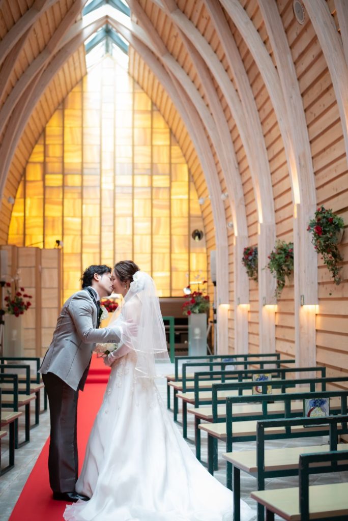 チャペル内の照明を使って厳かな雰囲気の写真も・・・