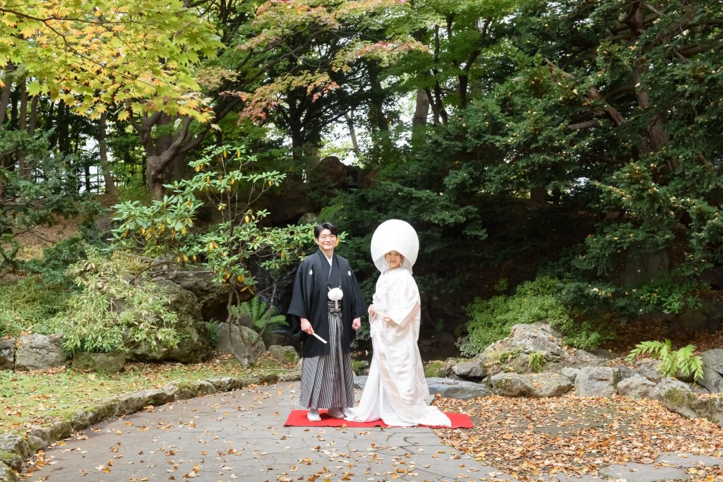 中島公園で紅葉フォトウェデイング豊平館、永山邸お客様の声